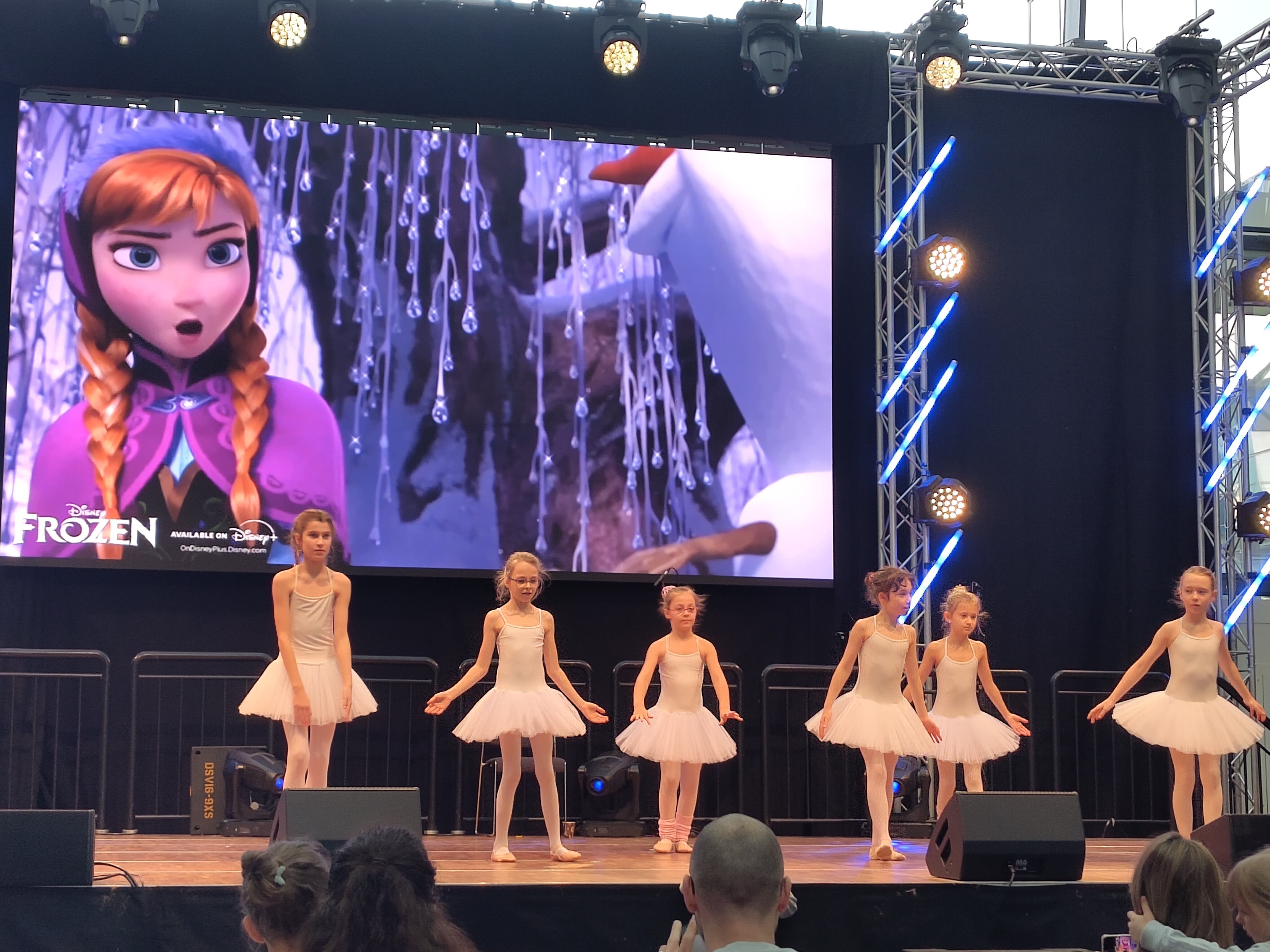 Unsere Ballettmäuse begannen nach dem rasanten Bühnenumbau mit „Do you want to build a Snowman“. Mit viel Charme und Freude standen sie auf der großen Bühne der weiten Welt und zeigten die abwechslungsreiche Choreografie ihrer Balletttrainerin Michela Piviero. Sie tanzten in Linie, über Kreuz und versammelten sich zum Schluss um den kleinen Schneemann. Theresa Haisch, die den Gesangspart übernahm und wie ein echter Profi auf der Bühne stand, performte gut gelaunt und voll Schwung. Bravo an alle, sehr gut gemacht!