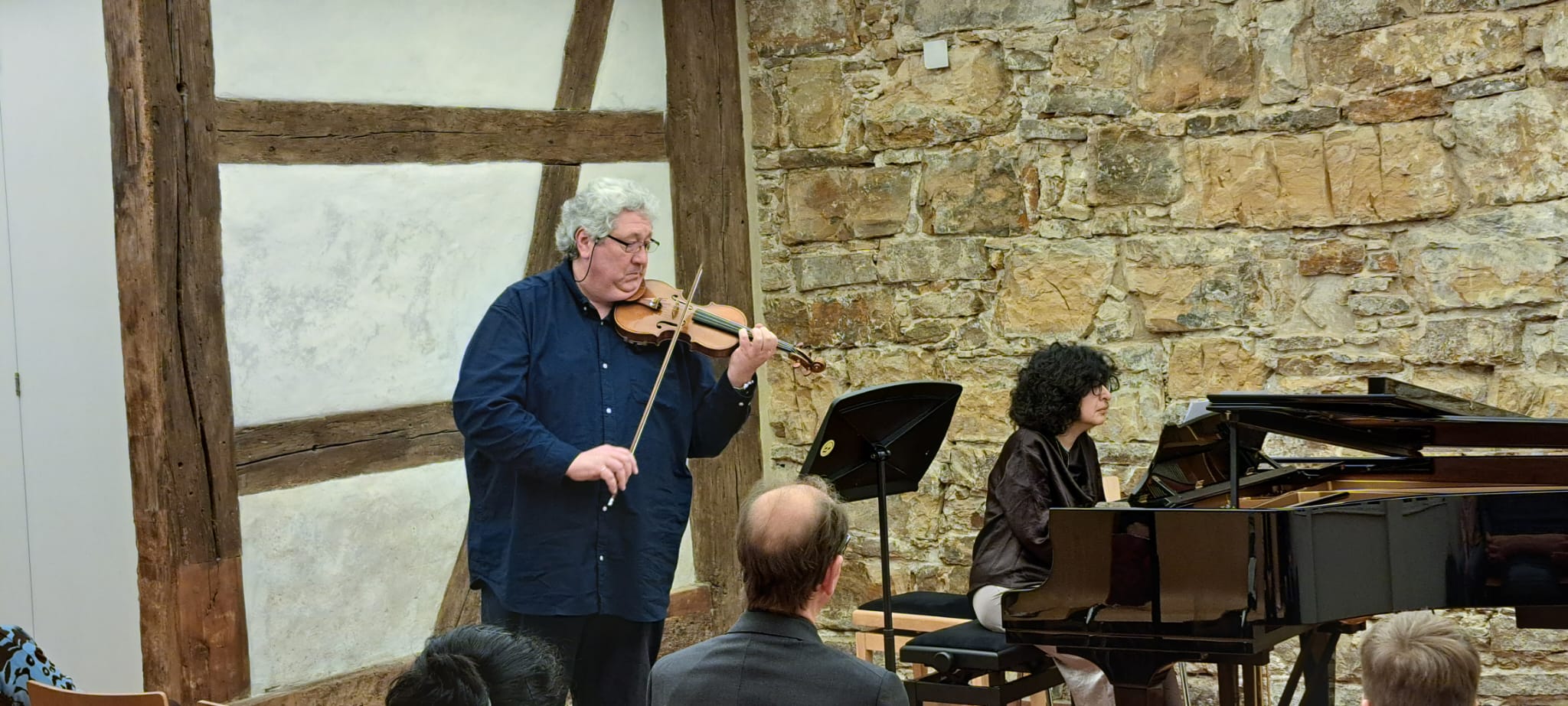 Im „Ungarischen Tanz Nr.1 g-moll“ von Johannes Brahms zündeten die beiden Klavierpädagogen der Musikschule ein wahres Feuerwerk und zeigten große Spielfreude und pianistische Größe. Im zweiten Ungarischen Tanz Nr. 5 erklang der wohl bekannteste Ungarische Tanz. Sie entlockten dem Steinway-Flügel schwere Puszta-Klänge und rasante Läufe und zeigten, welch schöne Klänge und kraftvolle Dynamik mit diesem besonderen Instrument im Foyer des Oberen Schlosses möglich sind.