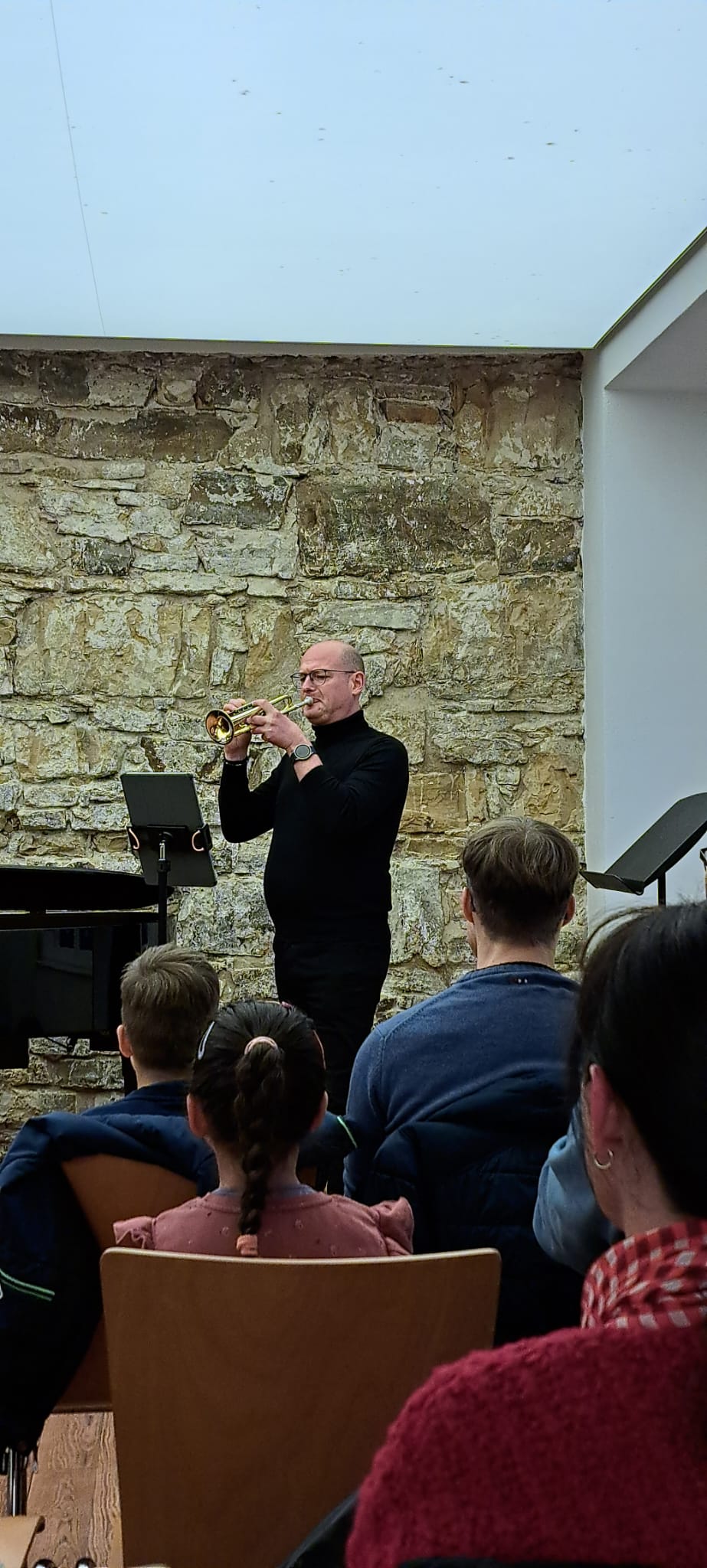 Am Sonntag, 18.01.26, fand im Oberen Schloss das Neujahrskonzert der Musikschule Neuhausen e. V. zur Eröffnung des Jubiläumsjahres 2026 statt. Die Instrumentallehrer Gülcin Aslanova (Klavier), Lara Babbar (Gesang), Marc Bühler (Trompete), Mark Krömer (Querflöte), Friedrich Mack (Gesang), Jens Niemeyer (Klavier) und Christoph Simon (Violine) luden zu einem abwechslungsreichen Konzert ein.